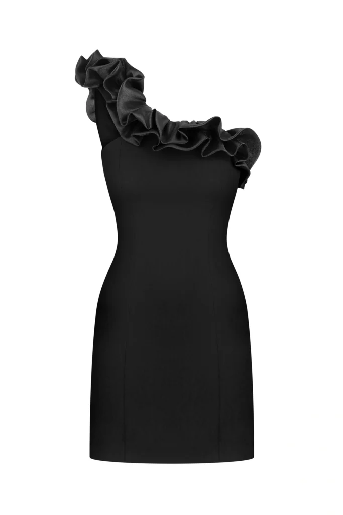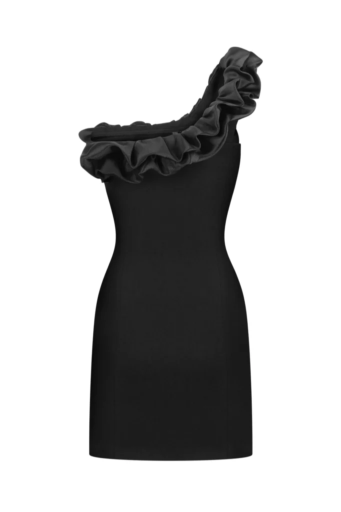 Сукня Bloom — витончена акцентна модель із рюшею, що додає образу святковості, залишаючи його стриманим та елегантним. Лаконічний силует поєднується з ніжною динамікою деталі, роблячи сукню ідеальним вибором для подій і вечірніх виходів.
